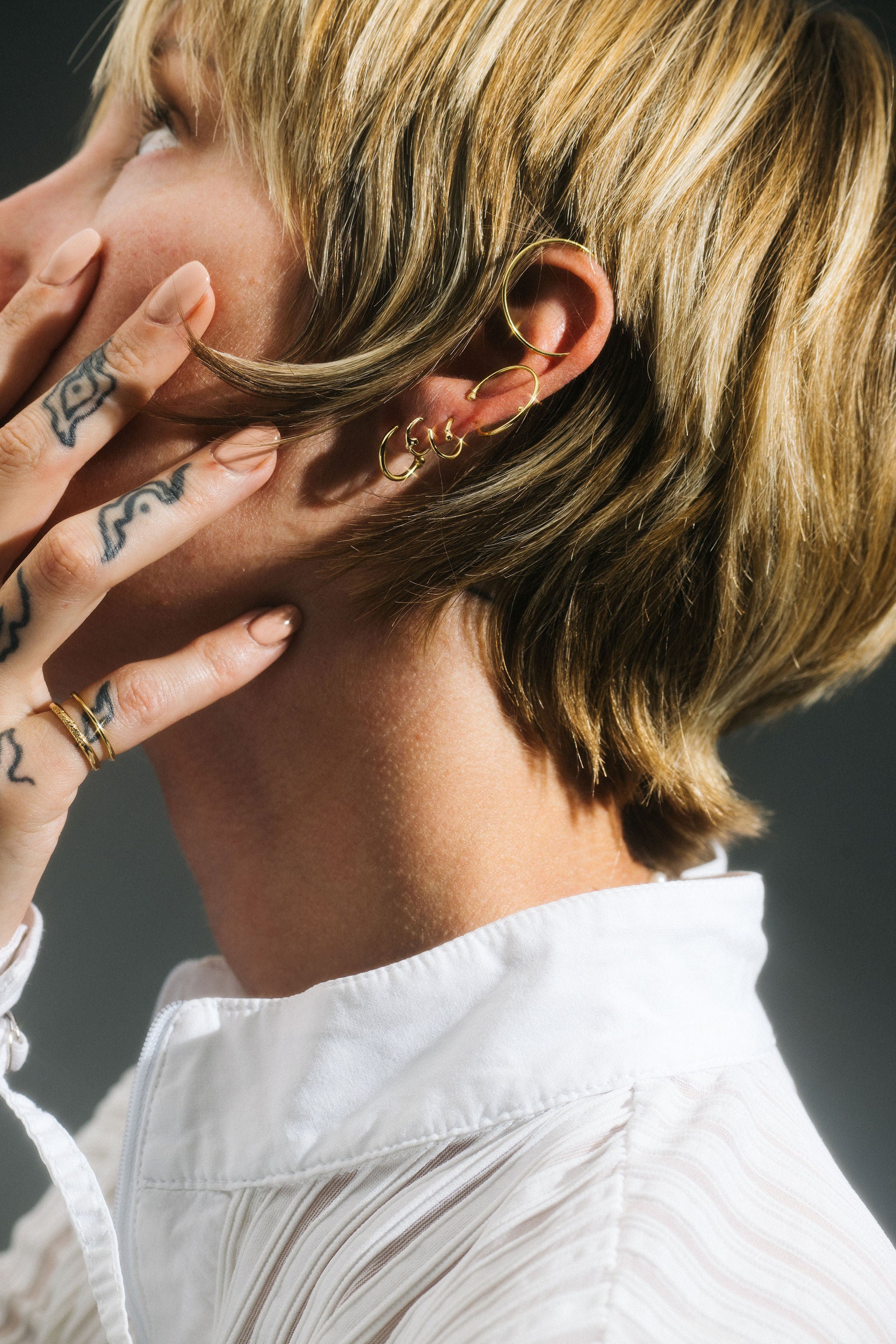 All of our jewelry is crafted from solid 14- or 18-karat gold, handmade with care to last a lifetime. We never use plating or gold-filled materials — each piece is sold individually, giving you the freedom to mix and match.