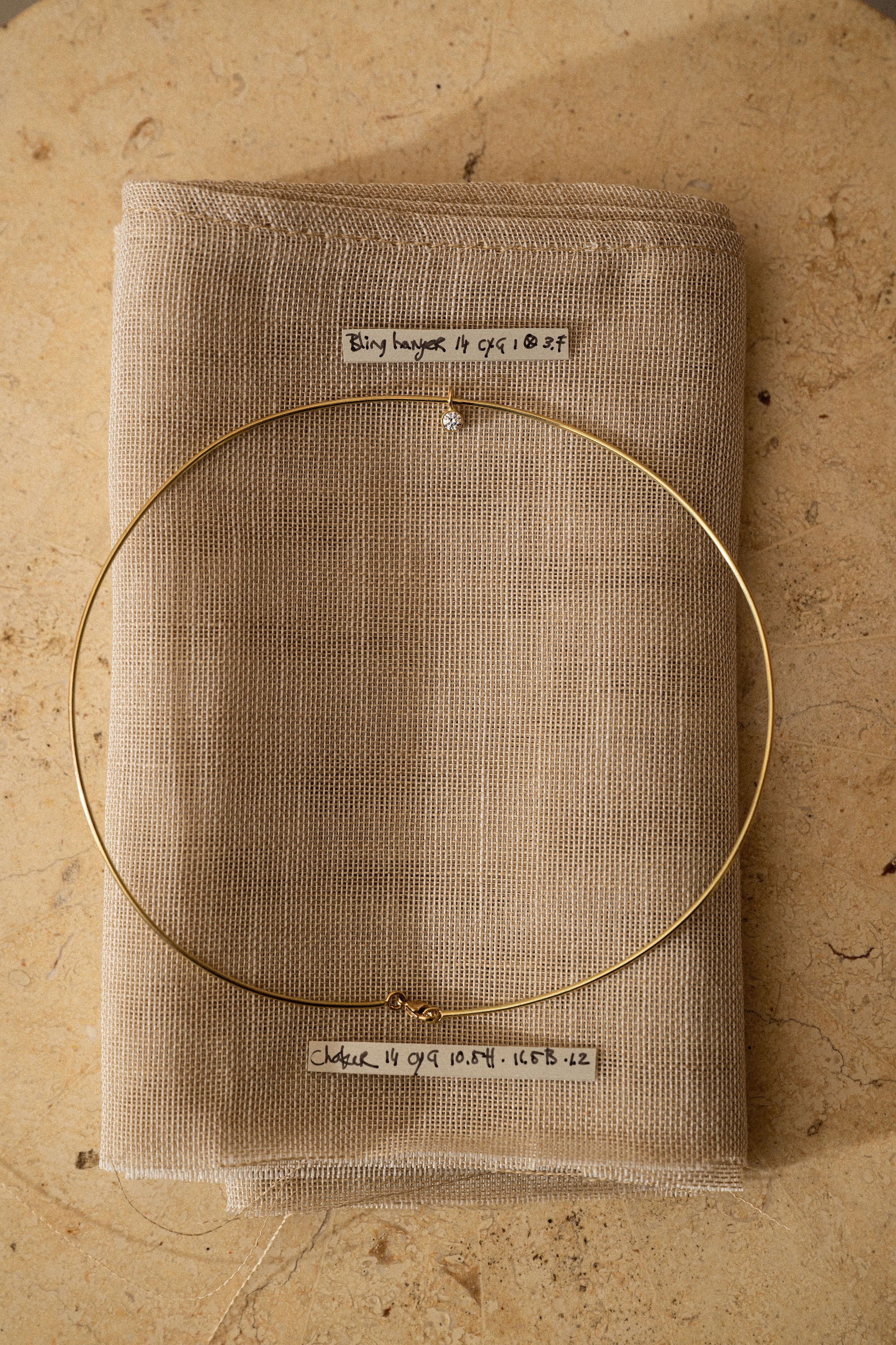 Finding the perfect length for your collier is a moment of care, just like choosing the piece you’ll treasure. For a choker, wrap the tape snugly around the base of your neck. For a script collier, measure where you want the pendant to sit—ideally positioned in the hollow of your collarbone.